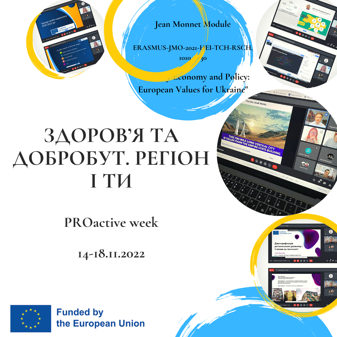 У листопаді Людмила Сагер, Наталія Летуновська та Анна Росохата провели ряд відкритих онлайн-лекцій у рамках курсу «Політика згуртованості ЄС: особливості просування для формування стійкої конкурентоспроможності регіонів», що реалізується відповідно до Жан Моне Модулю «Здорова економіка та політика її реалізації: європейські цінності для України» (101047530 – HEPE4U – ERASMUS-JMO-2021-HEI-TCH-RSCH). Усі лекції були розбиті на тематичні модулі, що окрім теоретичної частини містили і практичні кейси щодо впровадження політики згуртованості у розвиток регіонів.